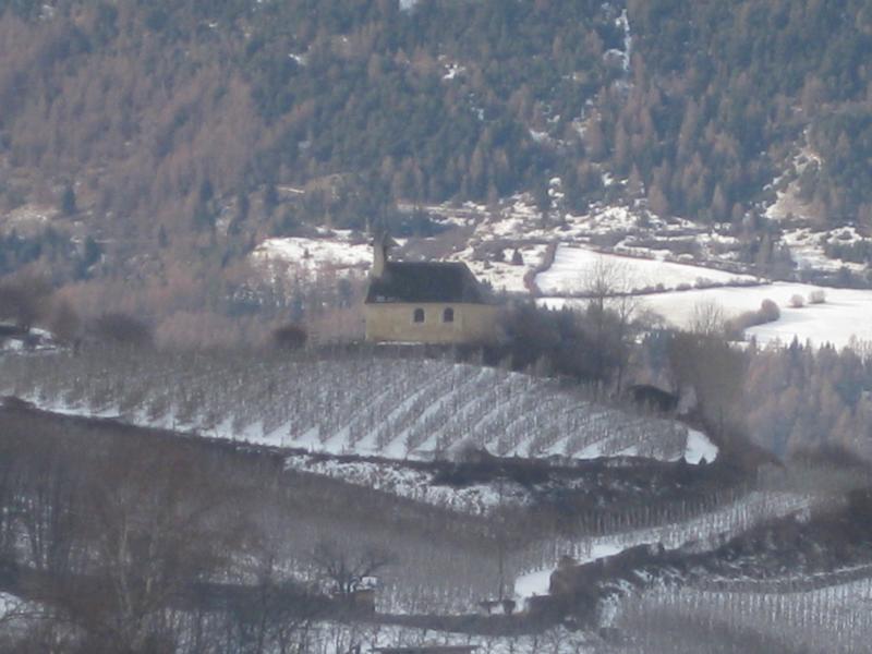 die alten Felder und die Ottilia Kirche im weißen Festtagskleid
