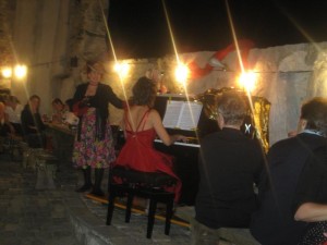Madame Cosima von Lutterotti begleitet die Sängerin am Klavier.