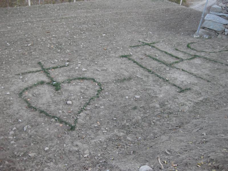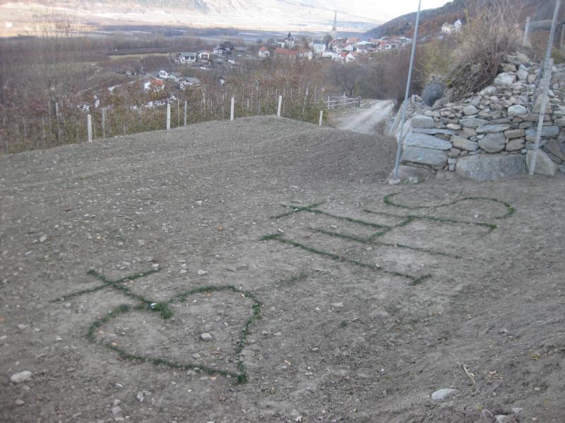 Langsam findet die Erde zu ihrer Ruhe und wird in ihrer Stille den Zauber des Frühlings vorbereiten. Vor wenigen Wochen haben Kinder und Erwachsene gemeinsam einen Kornacker in der Nähe der Ottilia Kirche neu mit Dinkel und Roggen angesät. Wie es in Tschengls Brauch ist, wurde das Segenszeichen in die Erde gesät. Da der Acker direkt am Weg liegt, können die Wanderer, die an der Ottilia Kirche vorbei gehen, dieses Segenszeichen betrachten. Gerne zeige ich untenstehend zwei  Bilder.